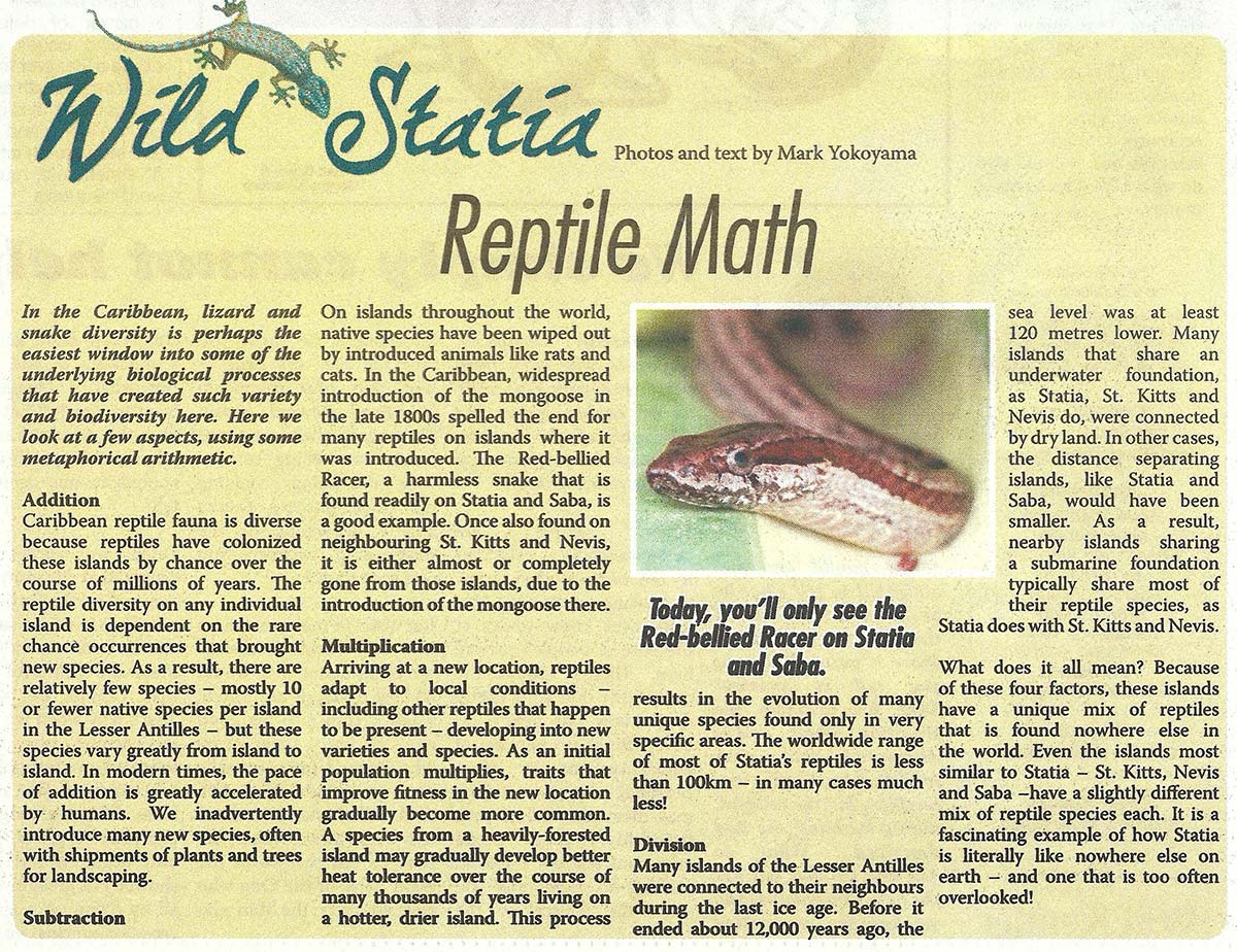 What makes Statia special? There are so many ways to answer that question, but one answer is reptiles. Why is the combination of reptiles on Statia different than any other island on earth? Find out with some “reptile math” in the latest Wild Statia article.
